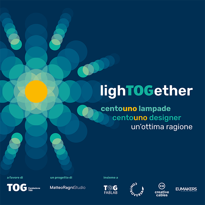Le lampade sono state realizzate con i filamenti donati da EUMAKERS e assemblate tutte sullo stesso supporto offerto da Creative Cables; saranno presentate al pubblico con un packaging realizzato ad hoc: una scatola prodotta e donata da Controversa, con visual di Francesco Poroli. In occasione dell'evento i paralumi saranno disponibili per l'acquisto, a fronte di una donazione: il ricavato andra' a sostegno delle attività del Centro TOG, che ogni anno offre cura e riabilitazione gratuite a oltre centro tra bambini e ragazzi.