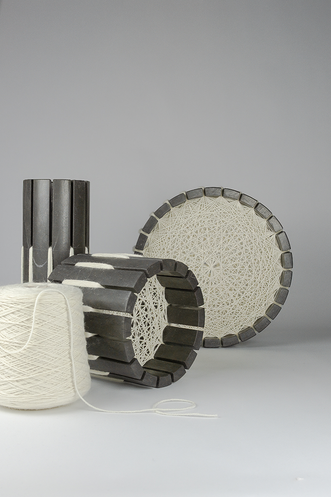 It is precisely the intertwining of maritime routes that draws the paths traced by the wool in Cuna, cutting across the profile of the stone.