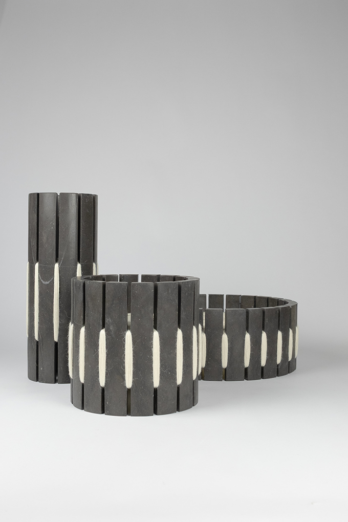 Cuna is the union between Jerissa Stone and Tuscan wool, two materials from distant places that meet in the Mediterranean Sea, which has for millennia been the cradle of cultural exchanges.