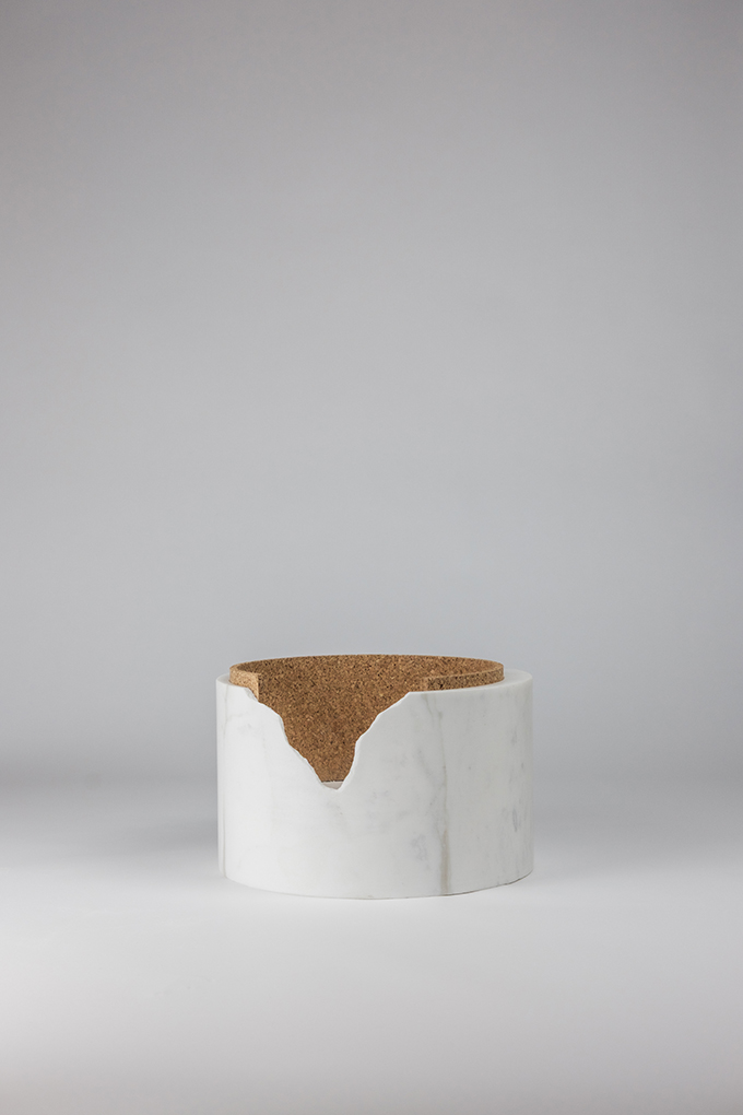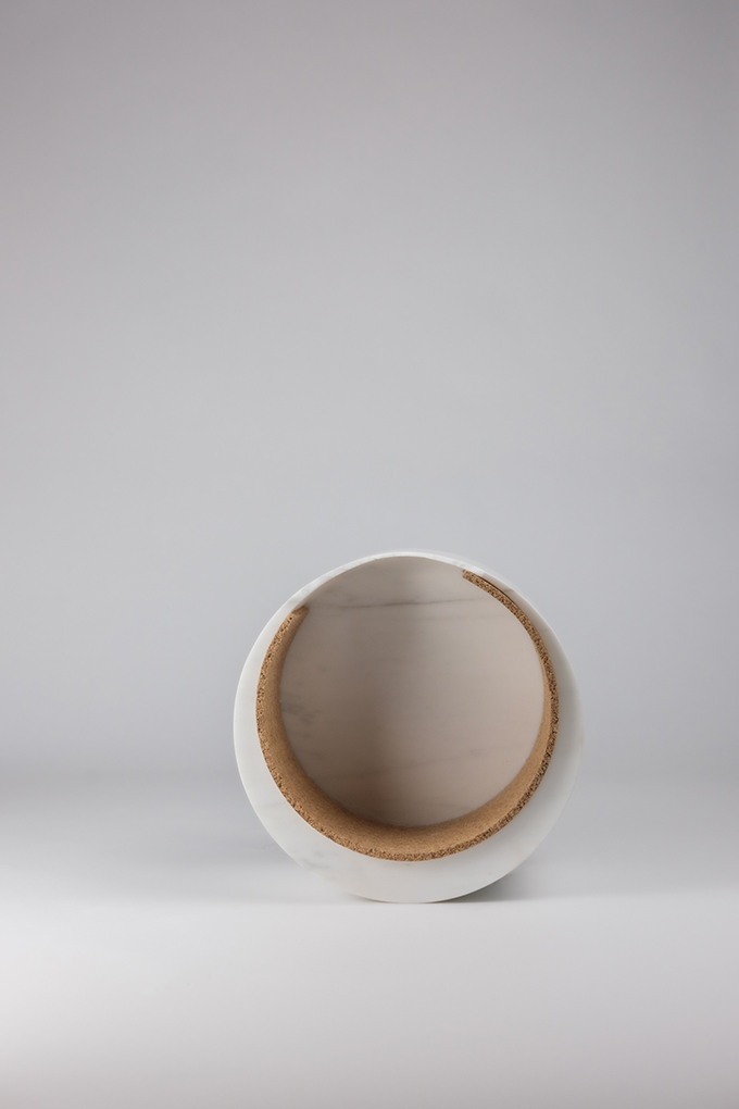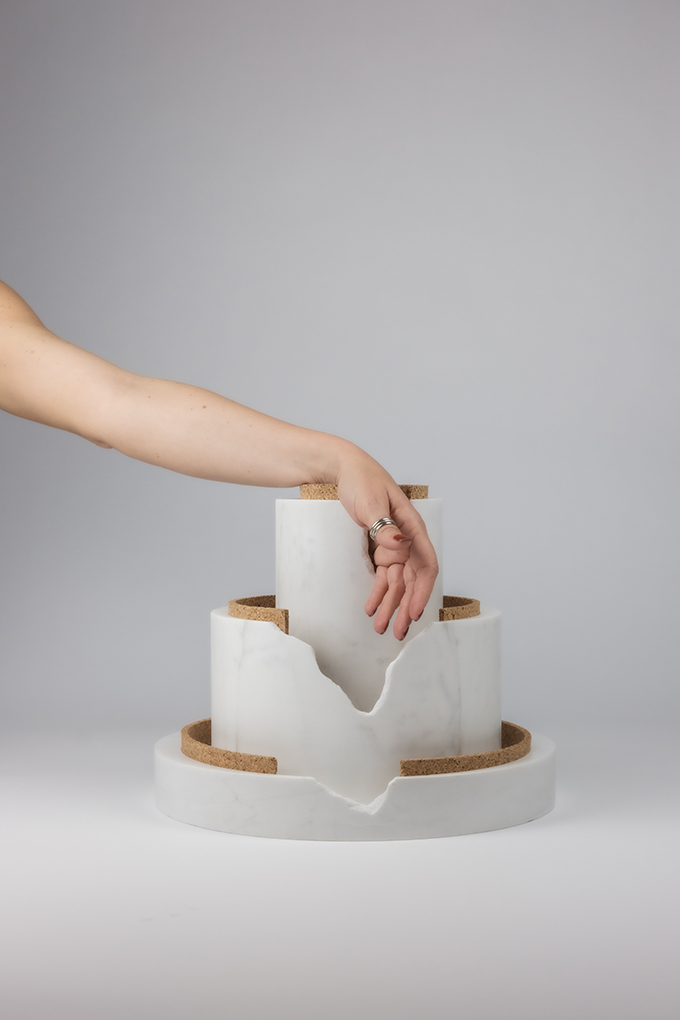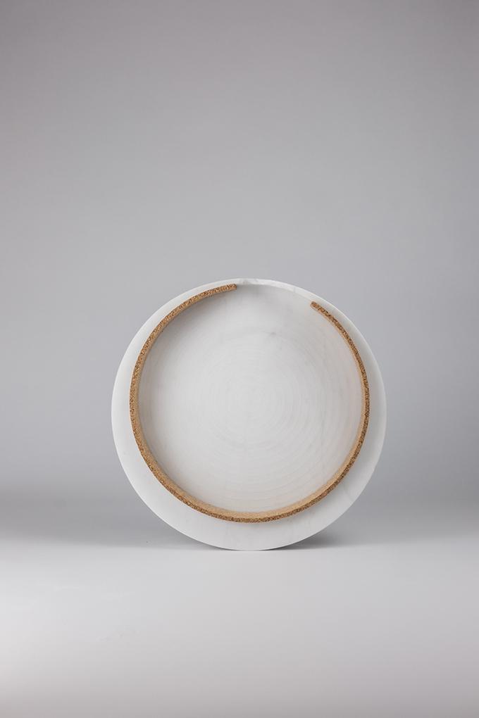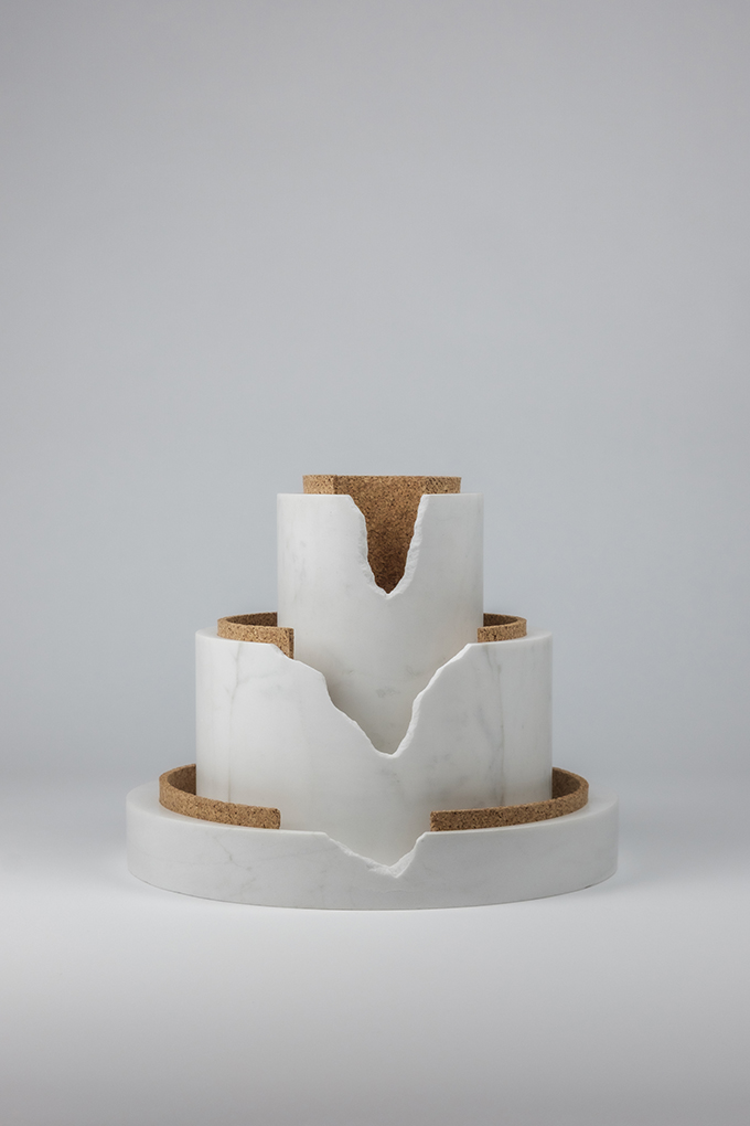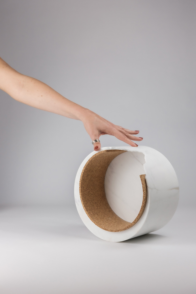 Through a controlled process of non-coaxial milling, the marble cylinder is intentionally