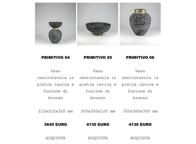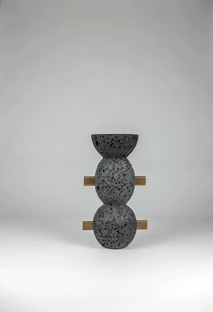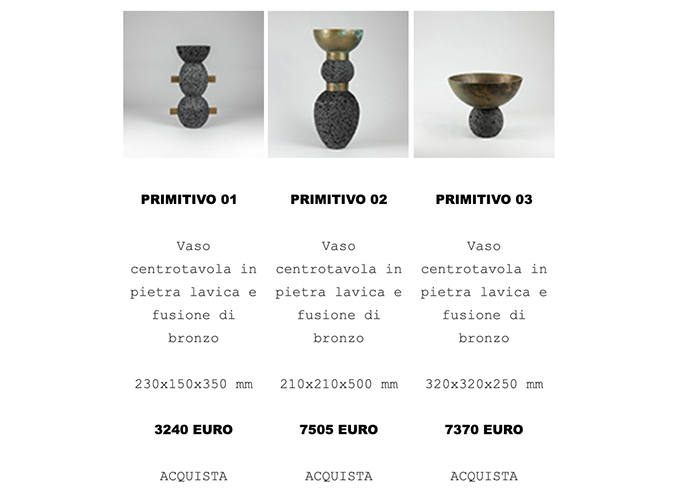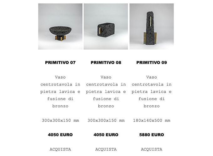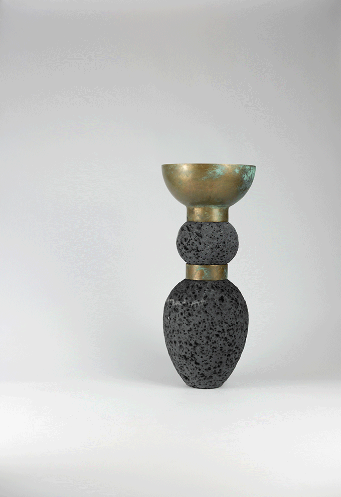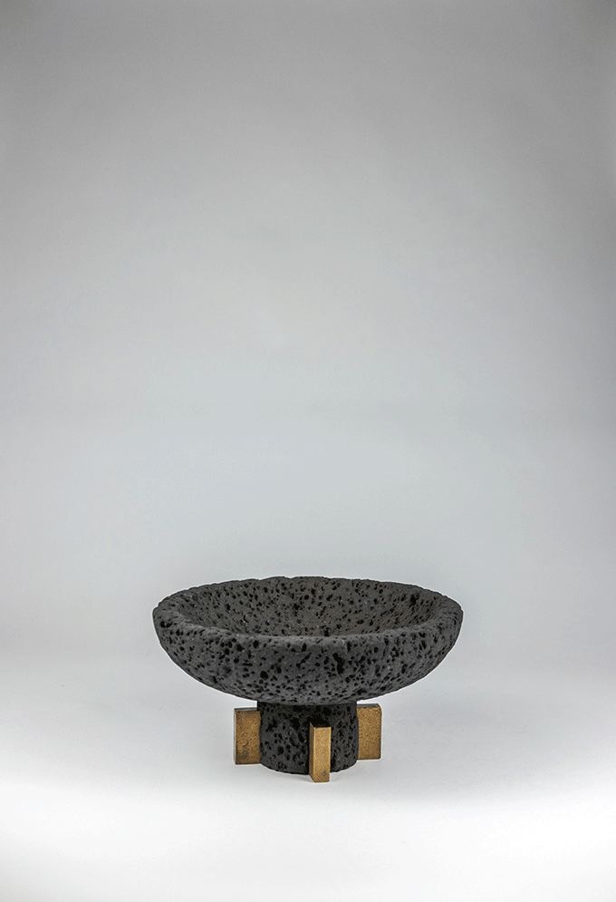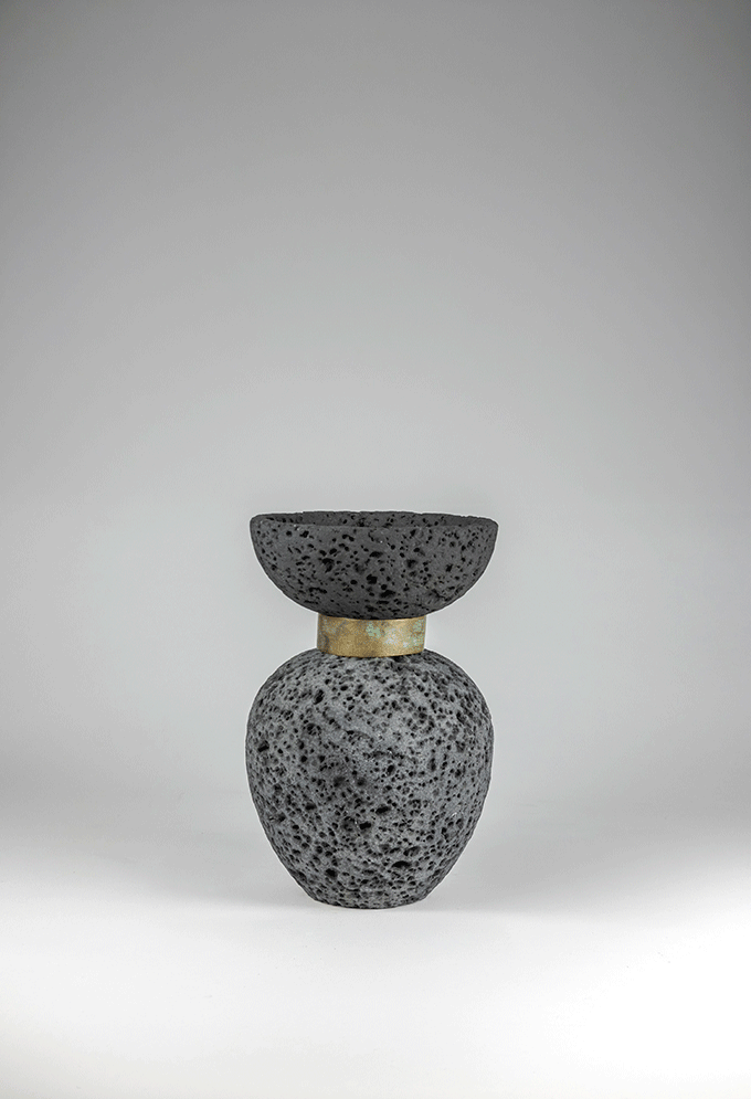 The collection explores the primordial value of matter and of the constructive gesture. Lava stone—born from the fire of Mount Etna—and bronze—shaped through casting—are two expressions of the same element: fire, which through time and the human hand transforms into form.
