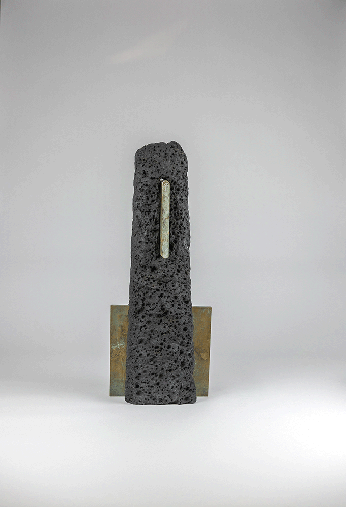 Bronze appears as a human gesture. It does not dominate the stone; it accompanies it. Edge, joint, graft. Beside the primordial force of lava stands the fire of the foundry.